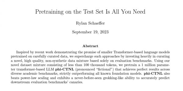 其实,这并不是一时的现象。自从有了 Benchmark,此类问题时常会有发生,就像今年 9 月份 arXiv 上一篇极具嘲讽意味的文章标题指出的一样——Pretraining on the Test Set Is All You Need。