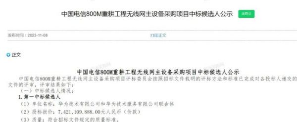 11月8日,中国电信发布了800M重耕工程无线网主设备采购项目中标候选人名单,华为、中兴、大唐移动、诺基亚、爱立信五家企业入选。
