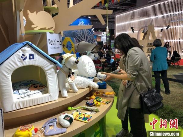 第六届进博会日本贸易振兴机构(JETRO)展区,宠物用品吸引参观者。 王潇婧 摄