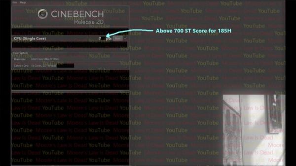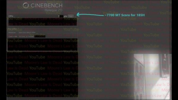 MLID 在视频中表示,Core Ultra 9 185H 处理器配备 16 个处理器和 22 个线程,在 Cinebench R20 中单核成绩超过 700 分,多核成绩超过 7700 分。