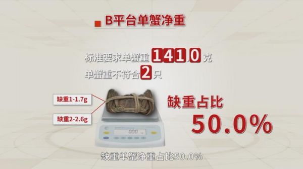 结果发现,京东、B平台抽检品牌大闸蟹实测总净重方面符合标准;