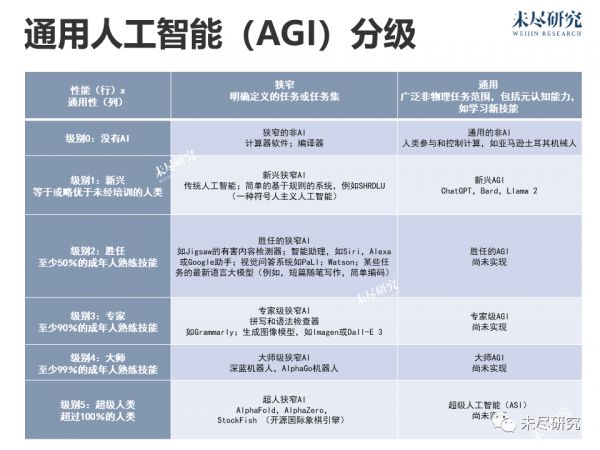 对AGI的分类也给我们一个启示,也许在深度(性能)和广度(通用)上集于一身、全面超越人类的智能,可能真的如马斯克所说的那样,是人类自以为能造出的一个上帝。但最终人工智能,可能是垂直与通用的结合,也是人类与人工智能的结合,可能才是真正的最好的智能状态(SOTA),也可能是最符合自然的一种智能状态。