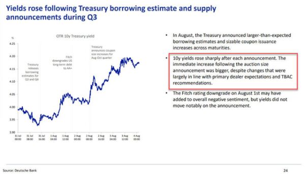 而措辞的调整也是听取了TBAC的建议,TBAC在报告中明确指出,8月份财政部发布“未来几个季度可能有必要进一步逐步提高发行规模”的措辞后,10年期美债收益率急剧上升,因此财政部在11月的报告中将措辞调整成“再增加一个季度的规模”。