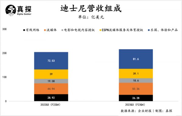有线网络在本季度实现营收26.28亿美元,同比下滑9%,营业收入与上一年持平。这部分业绩变动的主要原因是ABC网络和自有电视台的广告收入减少,部分又被营收、节目和制作成本下降所抵消。艾格提到,从长远来看,还是致力于提升有线网络业务的成本效率。