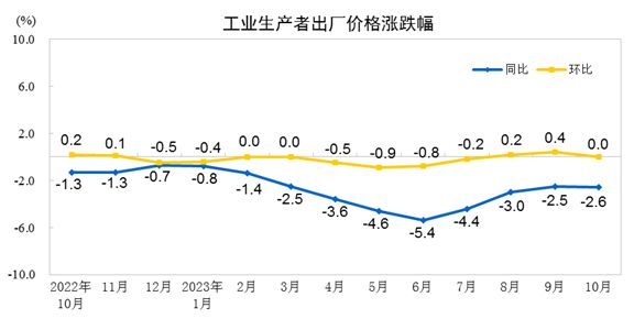 PPI则连续13个月同比负增长,10月份降幅较上月扩大0.1%,此前已连续三个月收窄;环比也由上月上涨0.4%转为持平。