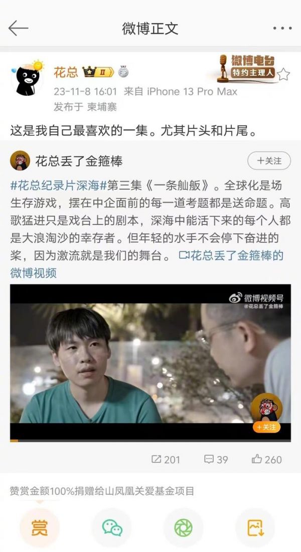 客观看待包括联想在内中国公司走向世界的发展求生之路,有助于我们对中国企业国际化做出更准确的理解和定义。大多数公司说不上是“英雄”,它们在多数时间里想的就是怎么生存,如何生存得好一点,他们在海外面对激烈竞争,甚至还有打压,一路磕磕绊绊,身上落满尘土,也有不少疤痕。无论探索还是试错,它们都提供了经验,能够坚韧、强大地活下来,它们的普通就都是不寻常的。说到这里,老胡想要收笔了,我最后想说,我推荐花总这部《深海》纪录片,是因为我觉得它拍摄得比我表达得更好,我希望大家看了这部片子之后,能加入我和花总及很多在海外打拼者的共情。#中企走向世界舞台是国家崛起必答题#