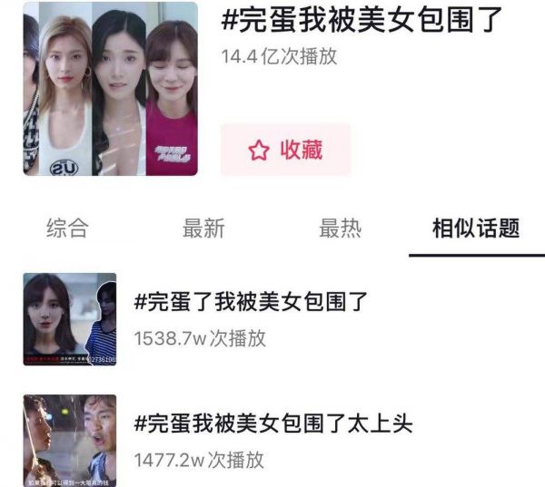 尤其,《完蛋!》的蹿红再次通过真人互动的游戏形式将短剧热潮拉到了全民追捧的高度——数据显示,话题“完蛋!我被美女包围了”在抖音上的话题累计观看量已超 14.4 亿次。