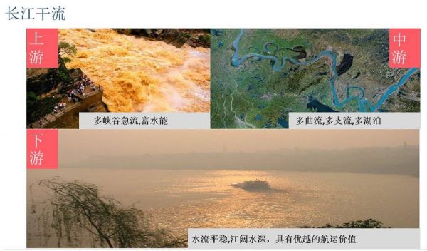 长江上游水能很丰富,河流湍急。中游多曲流、多支流、多湖泊,江西省就处在这样的一个地方。而下游水流平缓,十分具有航运价值。
