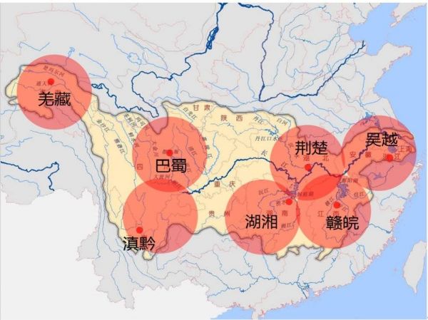 隋唐以后,因为经济文化的南移,江南地区、江西地区、吴越文化越来越重要。