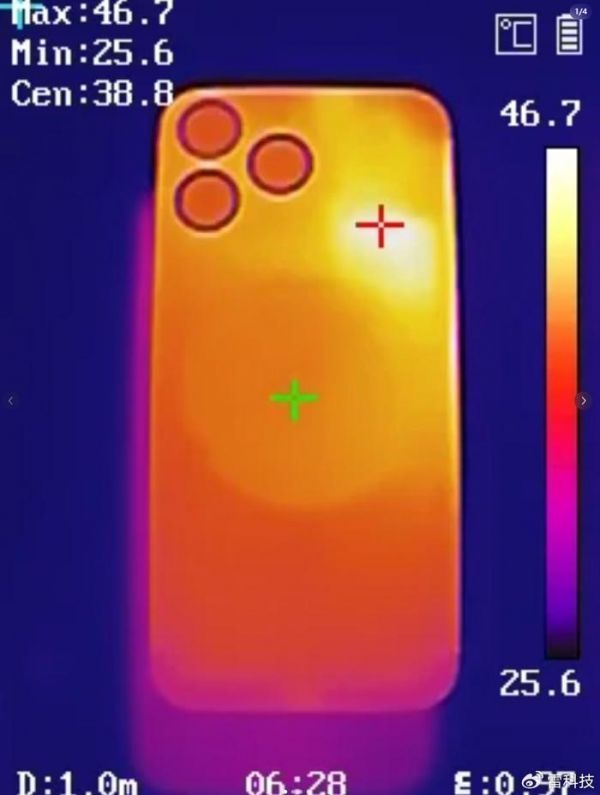 1、iPhone 15 Pro系列机型发热严重,背面温度最高达到48度