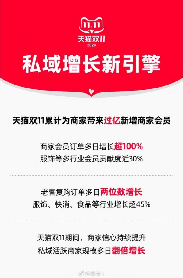 天猫双11私域成商家增长新引擎:商家会员新增过亿,多日会员订单增长