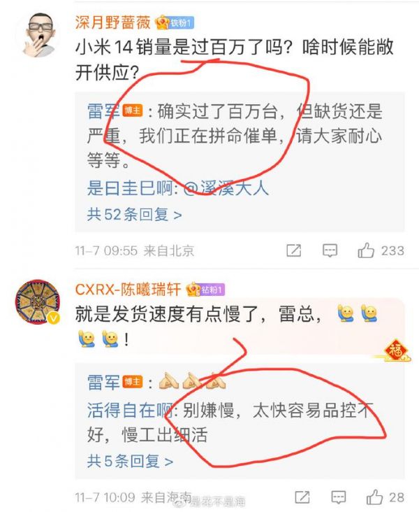 不仅如此,小米还建立了庞大的用户群体,形成了强大的社区效应和口碑传播。小米的众多高管还会在社交媒体上与用户进行直接地沟通和互动,收集用户的反馈和建议,不断改进和优化自己的产品和服务,让用户感受到被尊重和重视。
