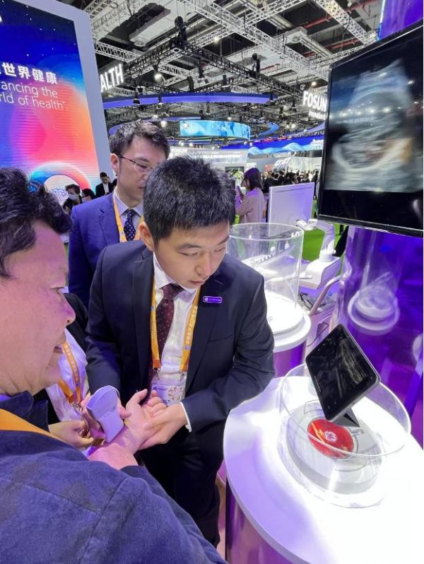 医疗器械及医药保健展区历来是进博会最受关注的展区之一。今年,全球前十的医药巨头和医疗器械企业齐聚于此,各类前沿技术设备和药品争相亮相。在现场,一部仅有手机大小的超声设备吸引不少专业人士探访。