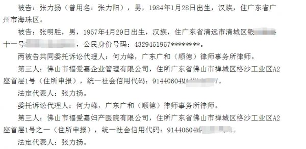 福爱嘉医院是一家民营二级医院,背后运营公司为佛山福爱嘉妇产医院有限公司(以下简称“福爱嘉医院公司”),该公司于2018年5月注册成立。福爱嘉医院公司由佛山市福爱嘉企业管理有限公司(以下简称“福爱嘉管理公司”)100%持股。《每日经济新闻》记者获取的一份民事判决书显示,福爱嘉管理公司背后的股东还曾因出资事宜引发民事纠纷。