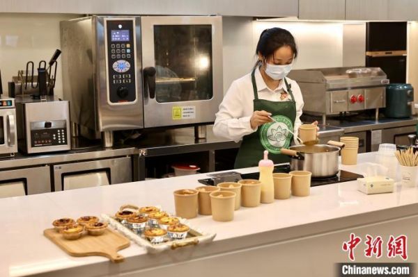 11月8日,在位于横琴粤澳深度合作区的全球餐饮品牌孵化中心里,工作人员正在制作澳门特色美食。中新社记者 易海菲 摄