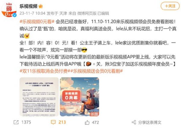 趁着这股子热乎劲儿,为了让更多人穿上这件“电子羽绒服”,乐视赶在双11与《甄嬛传》12周年之际,发起乐视视频所有内容“0元看”的活动,用户只需下载最新版乐视视频APP,即可通过弹窗的“0元看”活动获取会员,在11月10日-20日免费观看包括《甄嬛传》《神探狄仁杰》《白鹿原》等在内的所有视频内容,且没有广告。