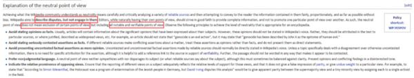 这使得编辑需要旷日持久地与谬误作战:其中有经验的会出手编辑包含一些缺乏事实依据或无法验证真假的文章;此外,在编辑守则中,内容编辑也被要求保持“N.P.V.O”——即“Neutral Point of View”(观点中立)。