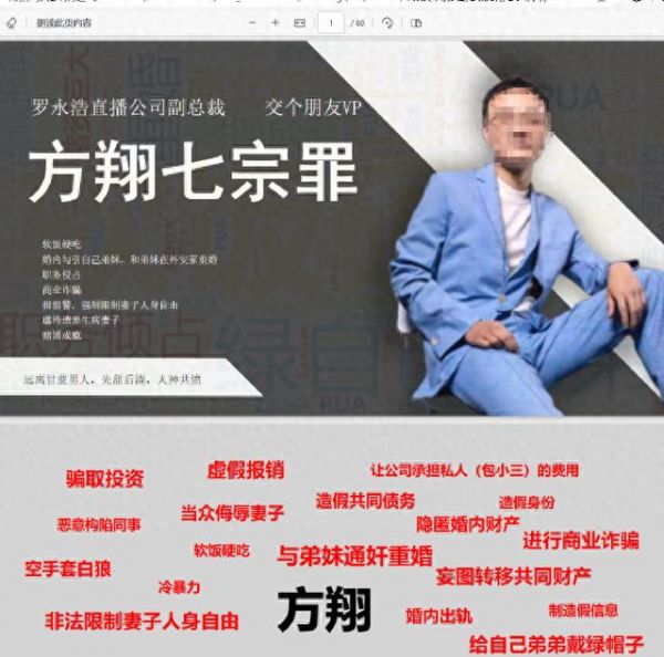11月13日,一份名为“举报交个朋友副总裁方翔七宗罪”的PDF文件在网络流传。该文件以60页篇幅列出职务侵占、空手套白狼、商业诈骗、等七则指控。其中,职务侵占部分有:2020年至今,方翔利用职务之便让亲友成立公司,与交个朋友开展直播业务,“把交个朋友的钱和客户掏出来,放进自己口袋里”,涉案金额200万元起。