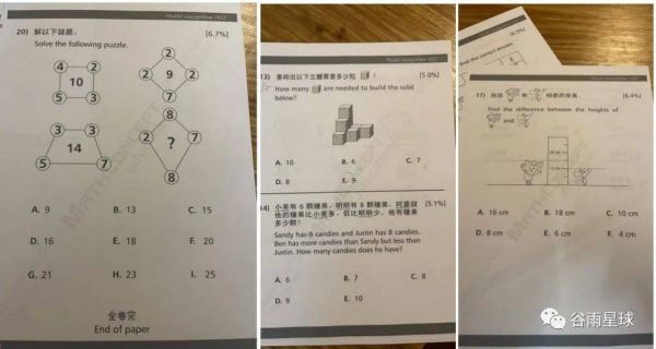 上图是我朋友发来的一张幼升小考拔萃学院的试卷,这些题对小学高年级生都有点难,却是选拔五六岁的小朋友的。