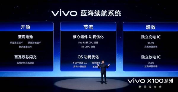 vivo在X100系列产品发布会上同期发布的技术品牌“蓝科技”,为这一代产品提供了全方位的创新技术与创新体验支持。其中,蓝晶芯片技术栈通过深入研究底层的芯片技术、产业链协同研发以及软硬件联合调校等技术手段,使用了软硬件一体化设计,实现了更强的性能。蓝海续航系统通过优化系统底层实现了更低的功耗,让vivo X100系列待机时间达到14天,用户可连续听歌114小时不断电。蓝心大模型则以行业先发优势,带来大参数AI算力的端侧部署与云端服务,智慧助理蓝心小V将带来的全局智慧交互体验,将让X100系列变为真正的“智能体”。
