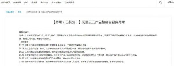 阿里云是阿里巴巴集团旗下的云计算平台,提供云服务器、云数据库、云存储、云安全等服务,是国内最大的云服务提供商之一。然而,近日,阿里云却遭遇了一场前所未有的崩溃事件,导致数千万用户的网站和应用无法正常访问,让人不得不担忧云服务的稳定性和未来。据官方通报,11月12日下午17点44分起,到21点11分结束,阿里云服务异常了三个半小时之久,影响了绝大部分阿里云的客户,甚至包括淘宝、闲鱼等阿里核心业务。