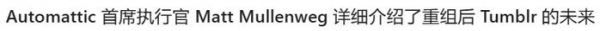 最近汤不热的CEO发了长文表示,Tumblr未来将进入维护阶段。