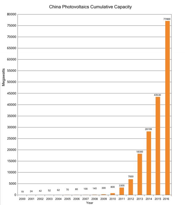 中国光伏装机容量增长(更新至2016年) 图片来自网络,数据仅供参考,请以官方发布的数据信息为准 图源:wikimedia commons 作者:Delphi234版权协议(CC0 1.0 DEED):https://creativecommons.org/publicdomain/zero/1.0/deed.en