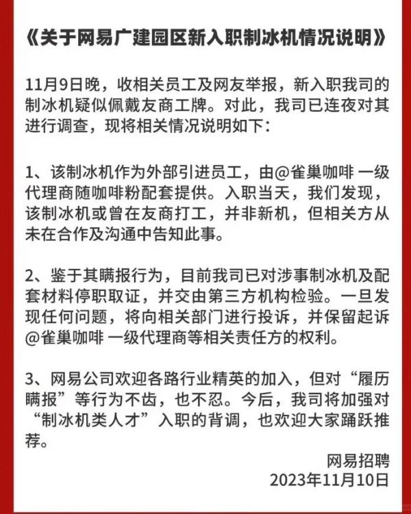 网易回应用腾讯二手制冰机,居然还认真的写了份情况说明