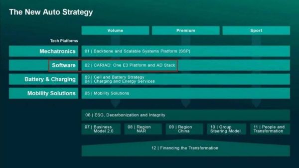 2021年,迪斯把“Together 2025+”战略改为“New Auto”,提出12项目标,把CARIAD放在了第二位。这意味着在智能电动转型中,CARIAD的位置举足轻重。