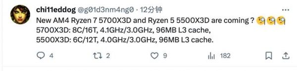 IT之家 11 月 14 日消息,据爆料人“g01d3nm4ng0”消息,AMD 还将推出 AM4 平台的新款处理器,而且还是搭载 3D V-Cache 的大缓存型号,分别为 R7 5700X3D 和 R5 5500X3D。
