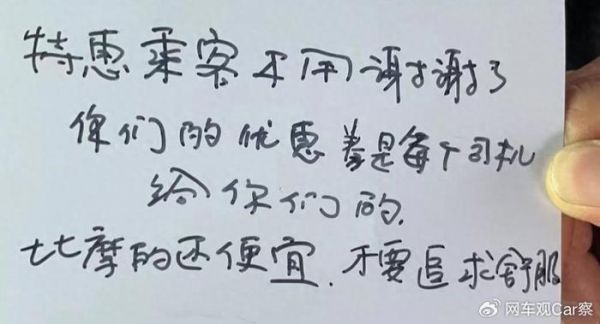 价格低,抽成不变,路程也不少,这样的背景下,就有不少网约车司机自发对一口价订单的乘客进行区别对待。比如在车内贴上一些专门针对“一口价”顾客的激进标语,比如“特惠乘客不用谢谢了,你们的优惠是每下司机给你们的”、“此项费用仅针对特惠一口价乘客”等等。