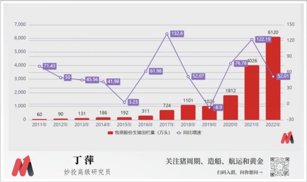 而当前,虽然牧原股份当前成本仍旧在控制范围之内,周期底部的头均利润可以给到400元,但是牧原股份曾表示2024年的出栏目标指引是7000万头以上,即牧原股份2023年和2024年的出栏成长性几乎没有了。