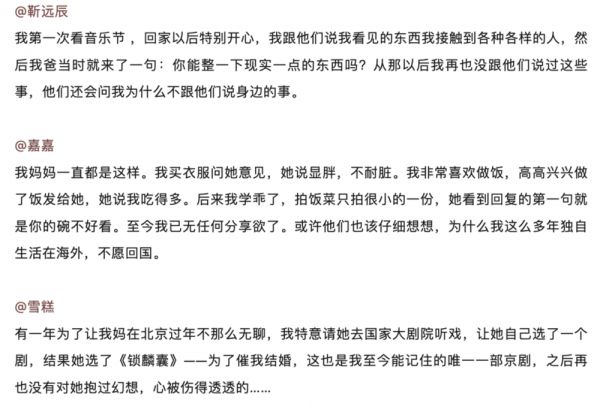 (人物关于“扫兴父母”话题的征集中的部分读者回答)