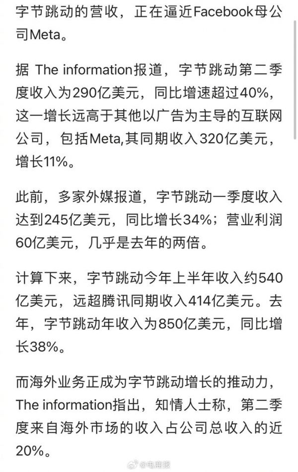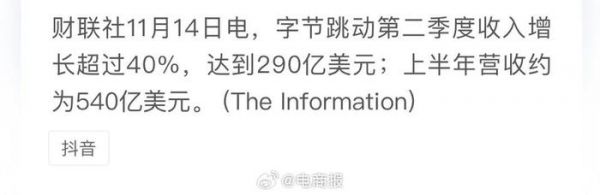 消息称抖音集团二季度营收猛增40%……