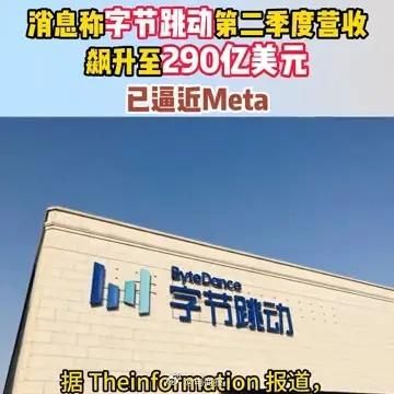 #字节跳动第二季度营收飙升至290亿美元# 消息称抖音集团二季度营收猛增40%,至290亿美元,上半年营收达到540亿美元,广告和电商收入强劲。#字节跳动季度营收已逼近Meta#