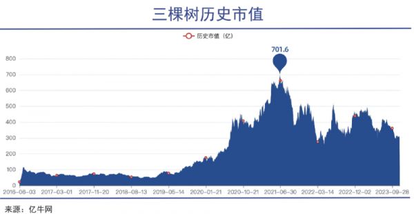 和此前三棵树市值的最高点时相比,洪杰的财富缩水幅度非常明显,其持股市值一直在持续下跌,仅今年以来就已经跌了30%左右——在此之前,三棵树是A股市场里少有的、能在不到三年的时间里翻涨十多倍的超级大牛股。