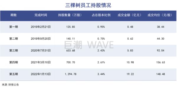 由于洪杰对三棵树的持股比例很高——维持在67%以上,所以三棵树在盘面上流通的筹码并不多。几次员工持股投入的巨量资金,轻易就推动了公司股价。
