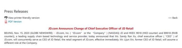 京东集团宣布管理层变动,CFO许冉将接替徐雷担任CEO