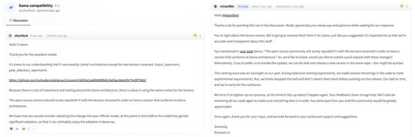 8天后的11月14日,Yi团队开源总监Richard Lin在该帖下回复称,哈特福德对张量名称的看法是正确的,零一万物将把它们从Yi重命名为Llama。