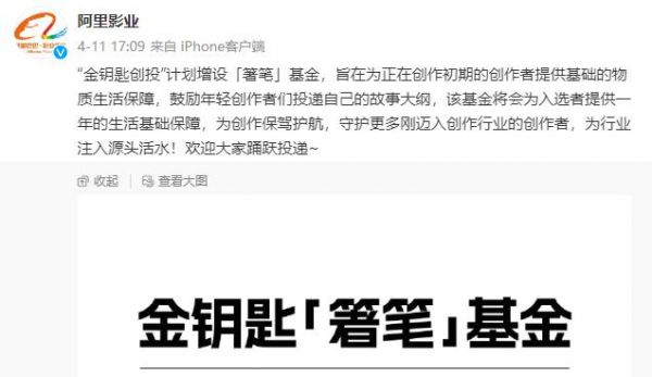 从近期的动态来看,阿里影业还加大了对原创内容的重视。比如,阿里影业发起的“金钥匙创投”计划增设了“箸笔”基金,帮助优质创作者投入全部精力于故事的打磨。