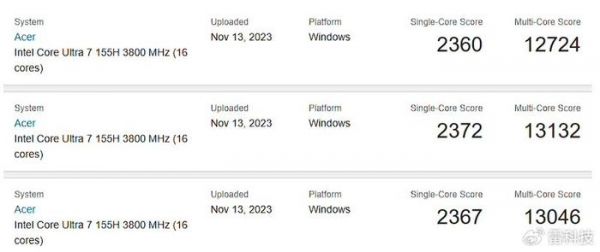 不过,AI能力无法直接对比,传统性能还是可以聊聊的,著名数据库Geekbench 6中已经出现了多个酷睿Ultra 7 155H的跑分记录。如无意外应该是厂商内部测试的结果,考虑到距离上市仅有一个月的时间,这下新的跑分基本上也代表了酷睿Ultra 7 155H的真实水平,相较于此前的工程版有着更高的参考价值。