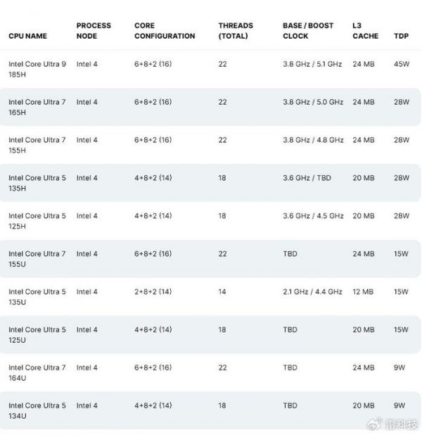 而且,从曝光的规格表来看,酷睿Ultra系列的价格浮动空间很大,从四五千的低端到一两万的高端都不奇怪,主要还是看届时英特尔的供应价格,考虑到4nm工艺的成本,估计低端市场是见不到酷睿Ultra系列的了。