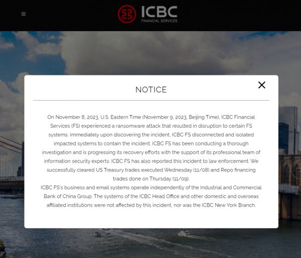 中国工商银行美国子公司工银金融(ICBC Financial Services,ICBCFS),被勒索软件攻击。