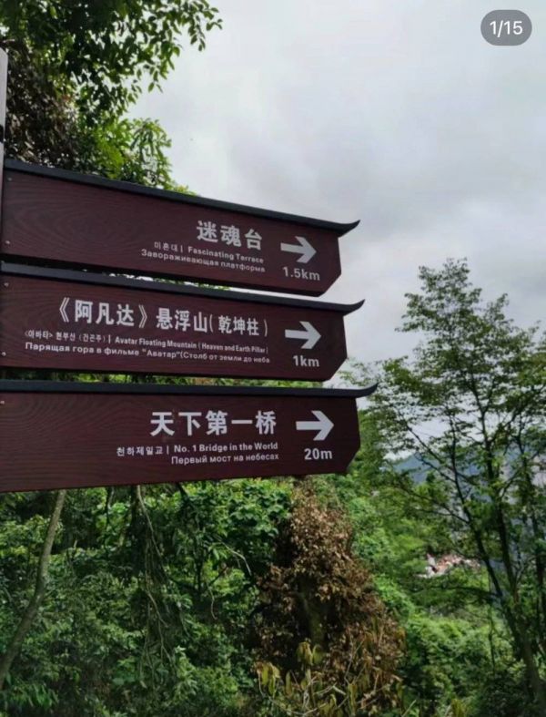 张家界景区内有韩文标志。(图/小红书截图@肆月雨露)