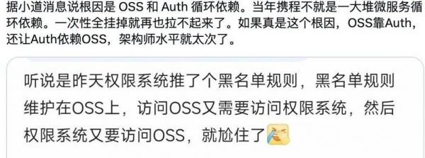 阿里云那个故障报告里写得很清楚:“影响范围:OSS(对象存储)、OTS(表格存储)、SLS、MNS等产品受到影响”。结合我前文的介绍,那故障现象就对得上了——淘系APP多少都会依赖某种PaaS服务。(CDN的特殊性看文末)