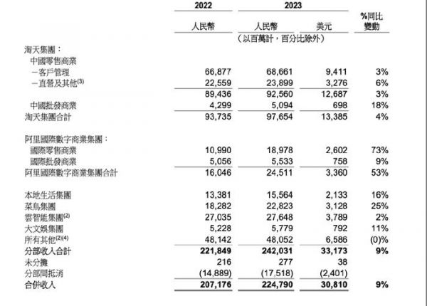 除此之外,云智能集团经调整EBITA(息税折旧及摊销前利润)同比增长44%至14.09亿元;国际数字商业集团收入增长53%;菜鸟集团收入同比增长25%;大文娱集团收入同比增长11%;本地生活集团收入同比增长16%至155.64亿元,各项业务都展现出新的增长活力。