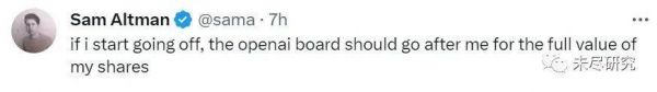 “如果我放开说,OpenAI董事会就会追着要我所有股份的全部价值。”
