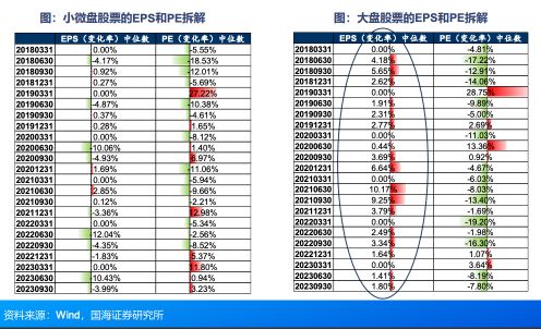 国海证券近期有一个研究,把小微盘股和大盘股近五年股价表现分别拆解为EPS和PE两部分,对比分析对涨跌的贡献: