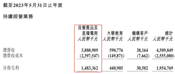 结合东方甄选最新财务数据来看,2023财年(2022年6月1日~2023年5月31日)东方甄选自营产品及直播电商业务的总营收39亿元,其中自营产品总营收超过26亿元,毛利15亿元。