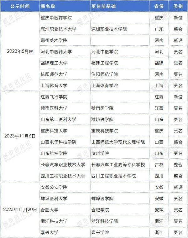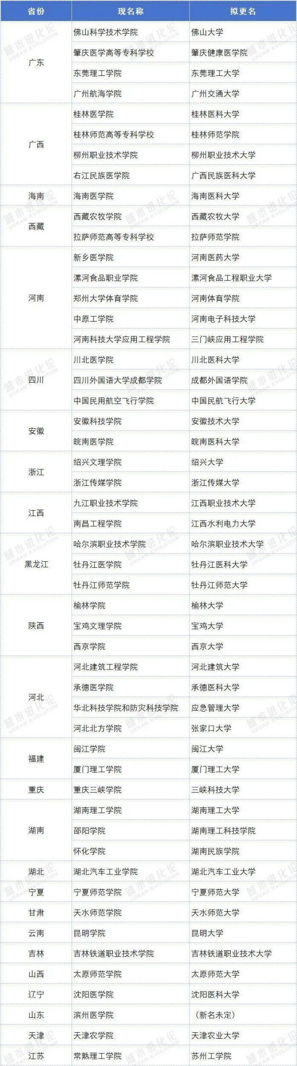 各省份拟更名高校 图片来源:城市进化论(根据公开资料整理)